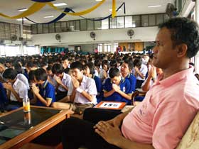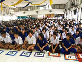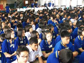 ฝ่ายบริหารบุคคล เป็นอีกวันหนึ่งที่ีฝ่ายบริหารบุคคลได้จัดกิจกรรมปฐมนิเทศนักเรียนใหม่ชั้น ม.4 ซึ่งความจริงแล้วจะมีนักเรียนเก่าชั้น ม.3เดิมจำนวนหนึ่งขึ้นมาเรียนในระดับนี้ แต่ก็พูดโดยรวมว่าเป็นนักเรียนชั้น ม.4 ใหม่ กิจกรรมวันนี้รูปแบบคล้ายกับการปฐมนิเทศนักเรียนชั้น ม.1 ที่ผ่านไปเมื่อวานนี้ โดยมีผู้อำนวยการอำนาจ เดชสุภา มาเปิดกิจกรรม ชี้แจงแนวทางการจัดการเรียนการสอนในปีการศึกษา 2554 นี้ ตามด้วยรองผู้อำนวยการแต่ละฝ่ายมาให้ความรู้ความเข้าใจถึงสิทธิหน้าที่ของนักเรียนทุกคน