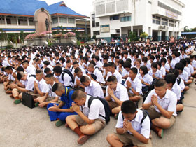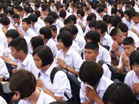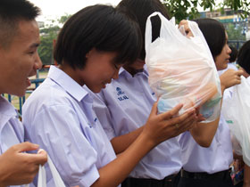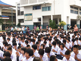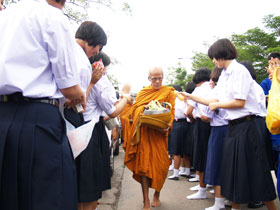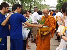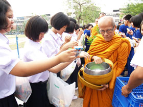 และเนื่องจากเป็นวันเปิดเรียนวันแรก ฝ่ายบริหารบุคคลได้จัดให้มีพิธีใส่บาตรข้าวสารอาหารแห้ง โดยมีนักเรียนและคุณครู ตลอดจนผู้ปกครองบางคน ได้ร่วมกันทำบุญใส่บาตรในวันนี้ด้วยเมื่อเวลา 7.45 น.