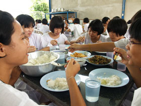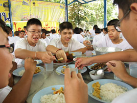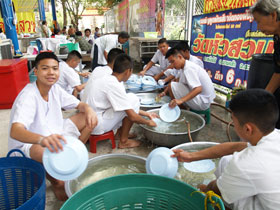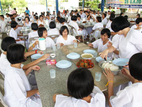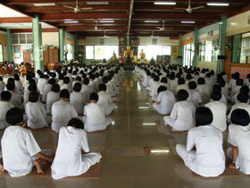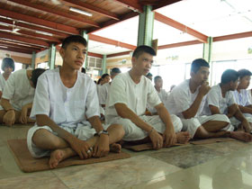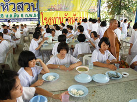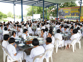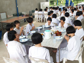 หลังจากพิธีเปิดกิจกรรมแล้ว ถึงเวลาที่นักเรียนทั้งหมดเข้ารับประทานอาหารมื้อสุดท้ายของวันที่โรงอาหารของวัด เพราะหลังจากนี้จะเป็นการเรียนและฝึกปฏิบัติโดยถือศีล 8 ไม่รับประทานอาหารมื้อเย็น ในการนี้พระอาจารย์บอกให้นักเรียนรับประทานอาหารให้มากกว่าปกติเพื่อจะได้บรรเทาความหิวในยามค่ำคืน แต่ถ้าใครหิวทางวัดจะจัดน้ำปานะเอาไว้ให้ดื่มบรรเทาหิว