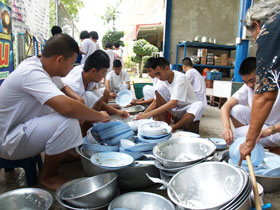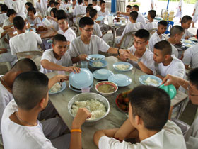 การจัดการเข้ารับประทานอาหารนั้นมีความเป็นระเบียบเรียบร้อย ทุกคนจะเริ่มรับประมานอาหารพร้อมกันหลังจากที่พระอาจารย์กล่าวนำพิจารณาอาหารจบแล้ว