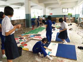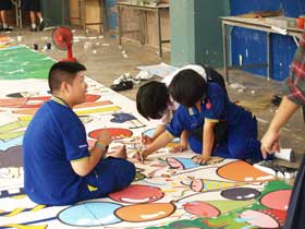 BRR NEWS มีโอกาสสังเกตการณ์เกี่ยวกับการจัดทำฉากเวทีกลาง ซึ่งนักเรียนได้ตั้งกองจัดทำงานกันที่ใต้อาคารสมเด็จพระเทพฯ ฉากได้รับการออกแบบมาและมีนักเรียนร่วมลงแรงลงสีเพื่อให้ฉากสมบูรณ์ เราพบเห็นเลยเก็บภาพบางส่วนมาให้ดูครับ
