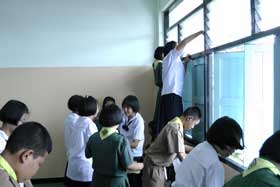 News วันนี้ (1 กรกฎาคม 2554) เป็นวันที่โรงเรียนได้ประกาศให้เป็นวันทำความสะอาดครั้งใหญ่ทั้งโรงเรียน ซึ่งได้รับความร่วมมือจากนักเรียนทุกชั้นเรียนเป็นอย่างดี ต่างพากันทำความสะอาดห้องเรียน เช็ดล้างโต๊ะเก้าอี้กันอย่างเป็นมหกรรมจริงๆ สมาชิกแต่ละห้องแบ่งหน้าที่กันทำความสะอาด ใช้เวลาในการทำงานไม่ถึง 3 ชั่วโมง ทุกห้องเรียนก็สะอาดเอี่ยม
