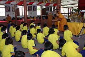 จากการเข้าสังเกตการณ์ นักเรียนได้รับการฝึกปฏิบัติสมาธิ และฝึกสวดมนต์เช้าและเย็นด้วย