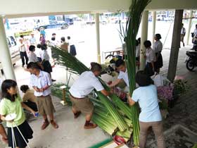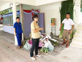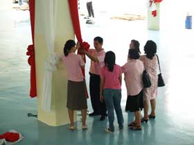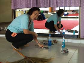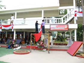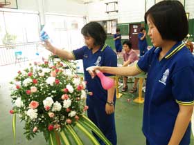 วันนี้เป็นวันคล้ายวันสุกดิบในประเพณีไทยที่ก่อนวันจัดงานมงคลจะมีการระดมสรรพกำลังมาช่วยกันทำงาน บ้างช่วยจัดดอกไม้ บ้างช่วยปัดกวาดเช็ดถู บ้างจัดประดับผ้าสีธงทิว บ้างช่วยประดับตกแต่งมุมสวยงามต่างๆ บ้างก็ช่วยจัดโต๊ะเก้าอี้ เพื่อให้งานทั้งหมดมีความสมบูรณ์ สมเกียรติสมฐานะ ... ซึ่งวันนี้ในโรงเรียนเบญจมฯจึงขวักไขว่ไปด้วยผู้คนที่กุลีกุจอช่วยกันทำงานเพื่อให้เสร็จทันก่อนพิธีการรับเสด็จทูลกระหม่อมหญิงอบลรัตนราชกัญญา ฯ องค์ประธานโครงการ TO BE NUMBER ONE ที่จะทรงดำเนินมาทำพิธีเปิดศูนย์เพื่อใจวัยรุ่นที่โรงเรียนเบญจมราชรังสฤษฎิ์ ในวันที่ 14 กรกฎาคม นี้ เวลา 17.00 น. และเมื่อเวลาประมาณ 16.30 น.ของวันนี้ (13 ก.ค.54) นายกิตติ ทรัพย์วิสุทธิ์ ท่านผู่ว่าราชการจังหวัดฉะเชิงเทรา พร้อมรองผู้ว่าฯ ได้เดินทางมาตรวจความพร้อม โดยมีผู้อำนวยการอำนาจ เดชสุภา และคณะให้การต้อนรับและนำเยี่ยมชมสถานที่ที่กำลังจัดประดับตบแต่ง