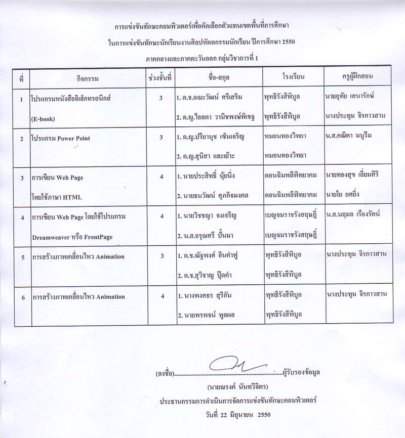 วันนี้มีการแข่งขันทักษะวิชาการของกลุ่มโรงเรียนมัธยมศึกษา โดยใช้โรงเรียนเบญจมราชรังสฤษฎิ์เป็นสนามสอบแข่งขัน โดยเฉพาะสาคอมพิวเตอร์ ได้ส่งผลการคัดเลือกมาแจ้งให้ทราบ ตามลิงค์นี้ (คลิก)