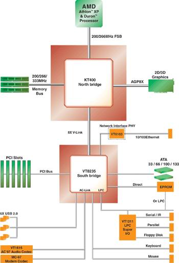 เป็นชุดวงจรรวมบนเมนบอร์ด ที่ทำหน้าที่ควบคุมการสื่อสารระหว่าง CPU กับอุปกรณ์รอบข้าง ดังตัวอย่างในไดอะแกรมข้างล่าง