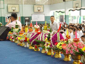 ทุกคนต้องมีครู เพราะทุกคนต้องเรียนรู้ ดังนั้นประเพณีไหว้ครู จึงอยู่คู่กับสังคมไทยตลอดมา เพราะคนไทยมีจิตใจที่เปี่ยมด้วยความกตัญญูรู้คุณ ในฐานะที่คนบ้านเบญจมฯ เป็นคนไทยคนหนึ่ง จึงร่วมสืบทอดวัฒนธรรมประเพณีนี้ไว้ และได้ปฏิบัติเป็นประจำในวันพฤหัสบดี ของสัปดาห์ที่ 2 เดือนมิถุนายน ทุกปี ไปดูภาพงานกันครับ | ||