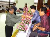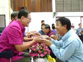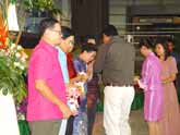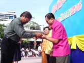 และตัวแทนนักเรียนได้มอบพวงดอกไม้เพื่อแสดงความเคารพแก่ครูอาจารย์และนักการทั้ง