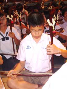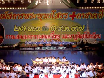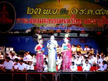 คืนวันที่ 27 พฤศจิกายน 2547 เป็นค่ำคืนที่เหล่าครู และนักเรียน ในเขตพื้นที่การศึกษา ฉะเชิงเทรา เขต 1 ได้รวมตัวทำกิจกรรมร่วมกัน คือการแสดงดนตรีไทยในงานนมัสการหลวงพ่อพุทธโสธร ประจำปี 2547 ณ เวทีกลาง หน้าศาลาไทย ครู และนักเรียนจำนวนกว่า 500 คน ได้ทำกิจกรรมร่วมกันอย่างนี้มา 9 ปี แล้ว นับว่าเป็นกิจกรรมที่น่าชื่นชม ที่นักเรียนจำนวนมากยังให้ความสนใจฝึกซ้อมดนตรีไทย ซึ่งเป็นมรดกทางวัฒนธรรมของชาติไทยเรา ที่เป็นเอกลักษณ์อย่างหนึ่งในหลาย ๆ อย่างของไทย เราไปดูกิจกรรมจากภาพถ่ายกัน |