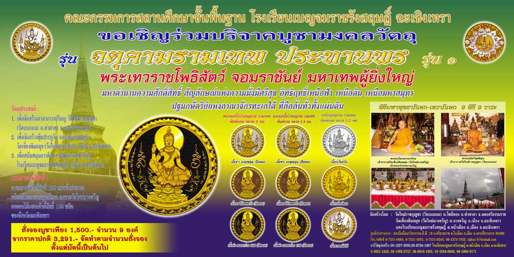 โรงเรียนเบญจมราชรังสฤษฎิ์ ขอเชิญเช่าบูชาเหรียญจาตุคามรามเทพ ดูรายละเอียดคลิกที่นี่