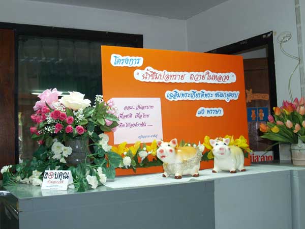 ให้ทุกคนหยอดกระปุกวันละบาทเพื่อถวายในหลวงเนื่องในโอกาสวันเฉลิมพระชนม์พรรษา