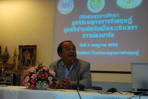 ผอ.อำนาจ เดชสุภา กล่าวให้โอวาทนักเรียนทุน และขอบคุณเจ้าของทุน