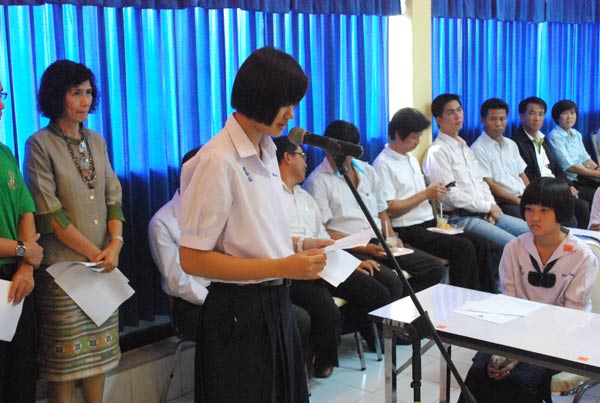 ตัวแทนนักเรียนกล่าวขอบคุณผู้ใหญ่ใจดี