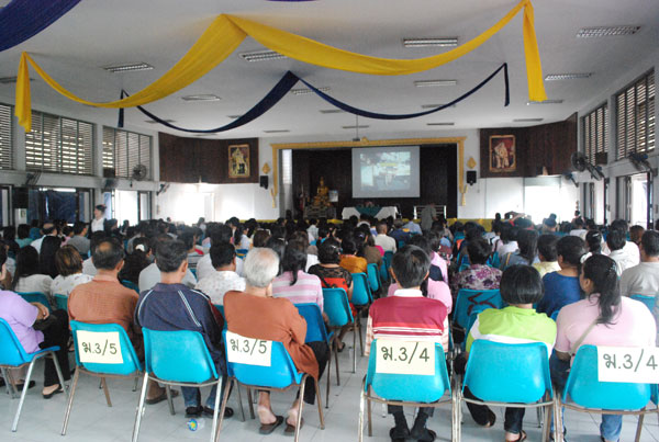 ผู้ปกครองกำลังชมบรรยายสรุปของงานบุคคล