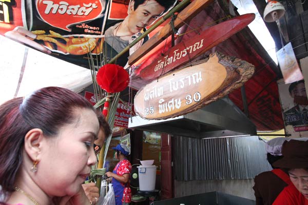 ลูกค้ารอซื้อผัดไทยโบราณอยู่หน้าร้าน